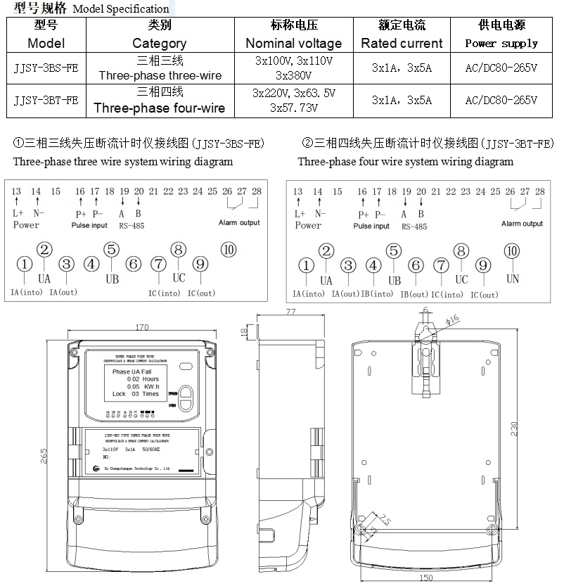 JJSY系列三相失壓斷流計時儀適用于電力三相三線、三相四線系統(tǒng),通過對電網(wǎng)電壓(PT)回路、電流(CT)回路進行監(jiān)視,能準(zhǔn)確判斷電網(wǎng)運行狀態(tài),并詳細記錄其處于故障期間的各種參數(shù),以便供電部門對電網(wǎng)進行管理,追補人為或非人為的漏計電能。 全英文菜單