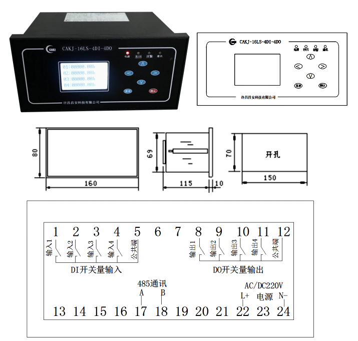 報(bào)警輸出:4路開(kāi)關(guān)量4DO