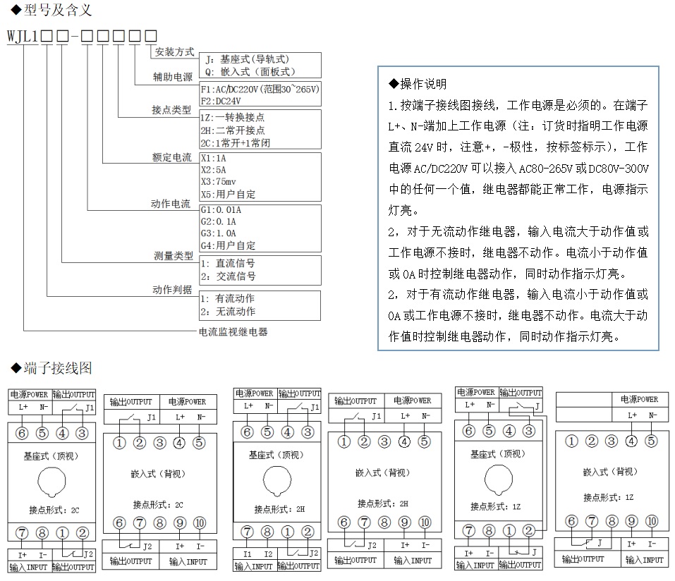 WJL100系列電流監(jiān)視繼電器,適用于交直流電流回路,監(jiān)視電流有或無。對小電流信號能做出準確判斷,對額定電流可以長期通入,繼電器檢測速度快,動作可靠,是運行設(shè)備簡單可靠的狀態(tài)監(jiān)視繼電器。
