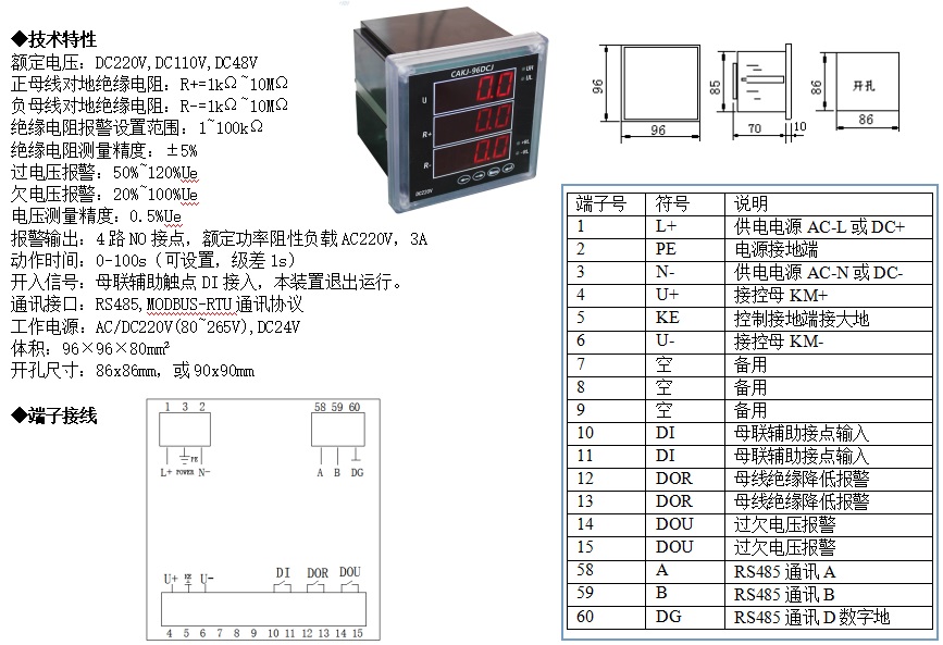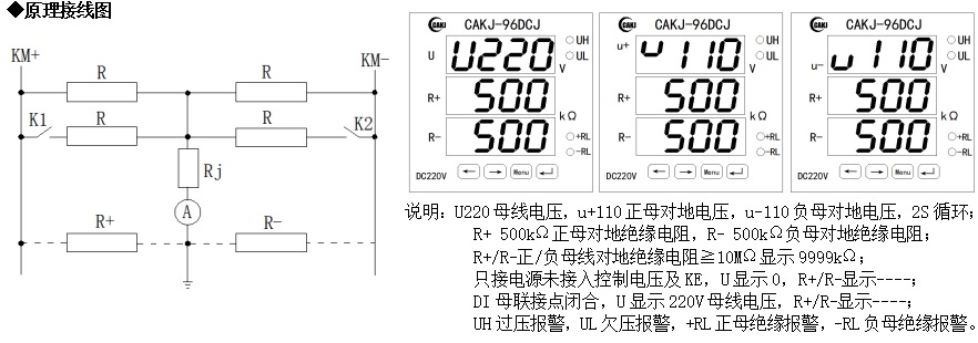 CAKJ-96DCJ絕緣監(jiān)察裝置,適用于DC300V以下直流不接地系統(tǒng)絕緣監(jiān)測(cè)。通過橋式比較電路及乒乓輔助判斷電路,準(zhǔn)確計(jì)算出直流母線正負(fù)極對(duì)地絕緣電阻(單母線絕緣降低或雙母線平衡絕緣降低),并給出不同信號(hào),為直流系統(tǒng)故障分析提供依據(jù)。