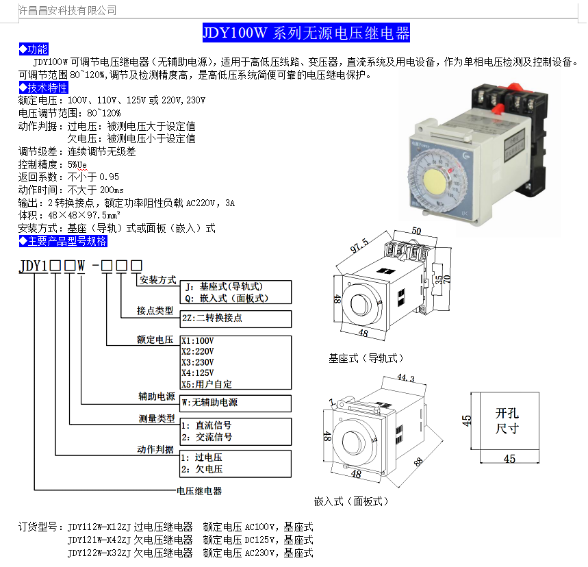 JDY100W可調(diào)節(jié)電壓繼電器(無輔助電源),適用于高低壓線路、變壓器,直流系統(tǒng)及用電設(shè)備,作為單相電壓檢測(cè)及控制設(shè)備??烧{(diào)節(jié)范圍80~120%,調(diào)節(jié)及檢測(cè)精度高,是高低壓系統(tǒng)簡(jiǎn)便可靠的電壓繼電保護(hù)。